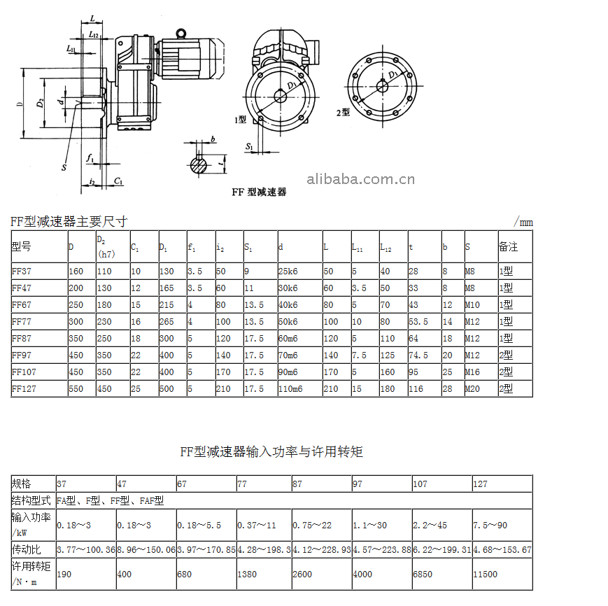 c.FF型—法蘭式平行軸斜齒減速器;
