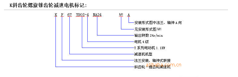 K斜齒輪螺旋錐齒輪減速電機型號: