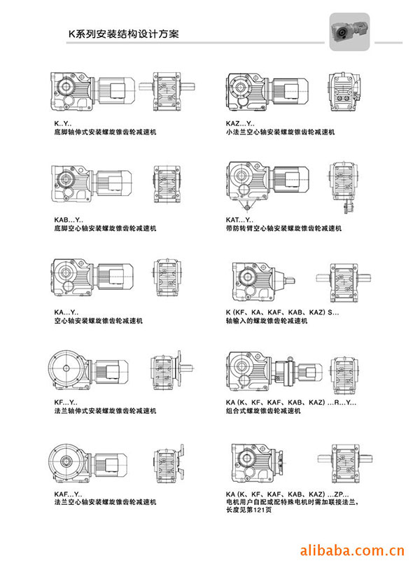 K系列螺旋錐齒輪減速機詳細介紹 K系列螺旋錐齒輪減速機結合國際技術要求制造,具有很高的科技含量; 節省空間,可靠耐用,承受過載能力高,功率可達200KW以上; 能耗低,性能優越,減速機效率高達95%以上; K螺旋錐齒輪減速機振動小,噪音低,節能高; 選用優良段鋼材料,鋼性鑄鐵箱體,齒輪表面經過高頻熱處理; 經過精密加工,構成了斜齒輪、傘齒輪、錐齒輪傳動總成的減速機配置各種類電機,形成機電一體化,完全保證了減速電機產品使用質量特征。 K斜齒輪螺旋錐齒輪減速電機結構形式: K-軸伸式、底..